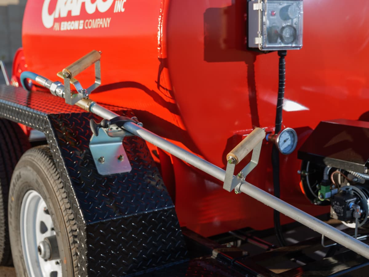 The Crafco Tack Tank’s unique cab control system uses the tow vehicle’s headlight switch to activate the spray bar.
